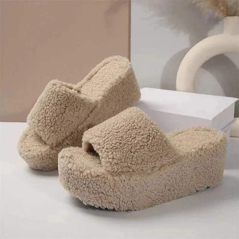 Wrapped in fuzzy, cloud-like fleece, these slides bring ultra soft warmth and relaxed, everyday comfort in one cozy design.  The cushioned platform adds gentle lift while keeping each step light and supported.  Easy to slip on for lounging or casual outings, they're the pair you'll reach for morning to night.
